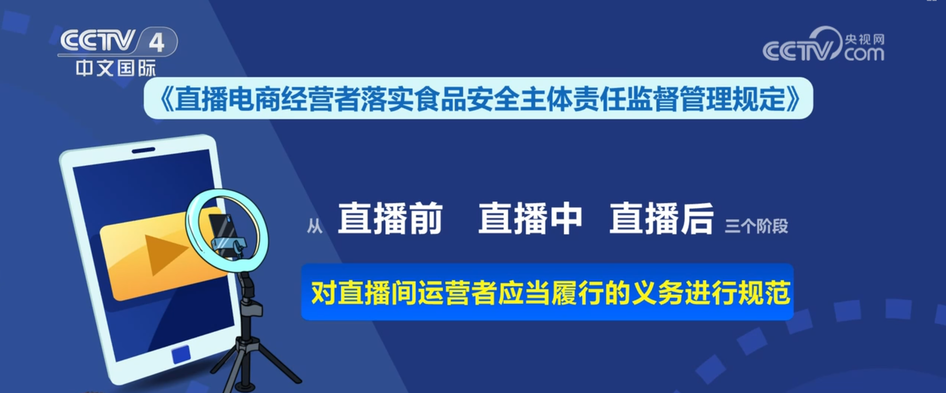 《》从曲播前、曲播中到曲播后三个阶段对曲播间运营者该当履行的权利进行规范,针对曲播营销人员的不怜悯形别离提出要求,明白其该当依法成立并落实食物平安办理轨制和严酷的选品轨制,配备响应的食物平安办理人员。